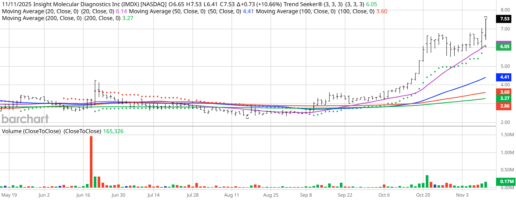 Barchart Technical Indicators for Insight Molecular Diagnostics