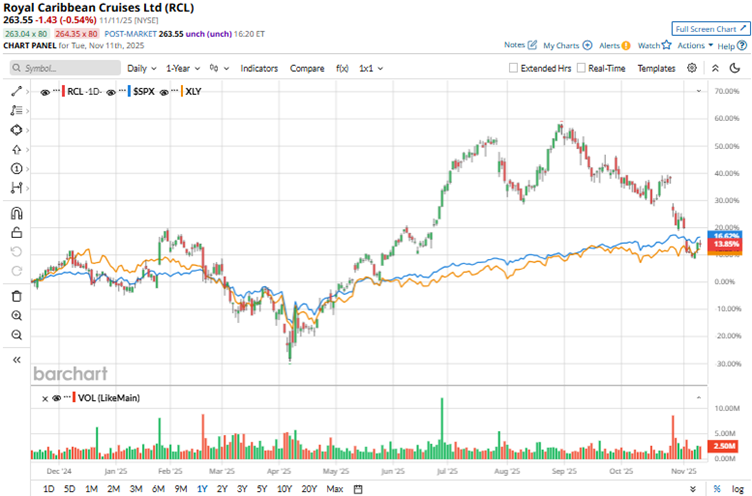Based on post-pandemic demand for cruising, Royal Caribbean’s stock gained 12.2% over the past 52 weeks. However, recently, the stock has dropped. Over the past three months, the decline was 13%. The stock had reached a 52-week high of $366.50 in August, but is down 28.1% from that level.