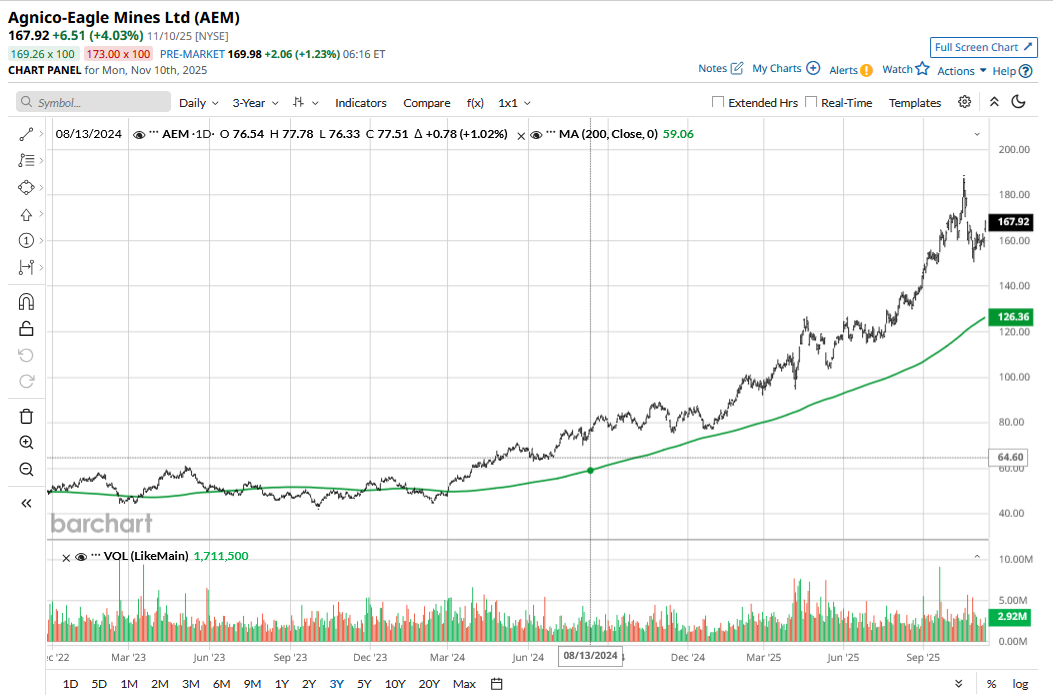 Agnico-Eagle Mines (AEM) shares have more than doubled this year, thanks to the stellar rise in gold prices (GCZ25). While gold prices took a breather and briefly fell below $4,000 per ounce, they have since returned above the psychological price level.